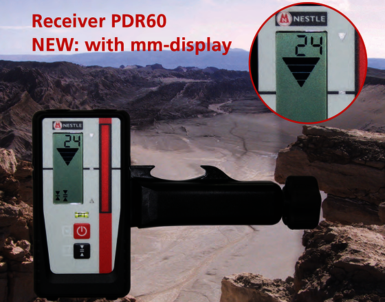 From now on all NESTLE Pulsar-H, HV-R and 2S have a laser receiver with mm-display. The display shows you the distance of the received laser beam to the center of the receiver. This makes level control and alignment even more effective.