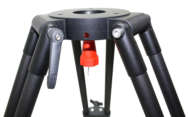 • For even load balancing the legs are equipped with two clamping screws. Due to the additional head clamping screw, the tripod plate can be freed from any torque.