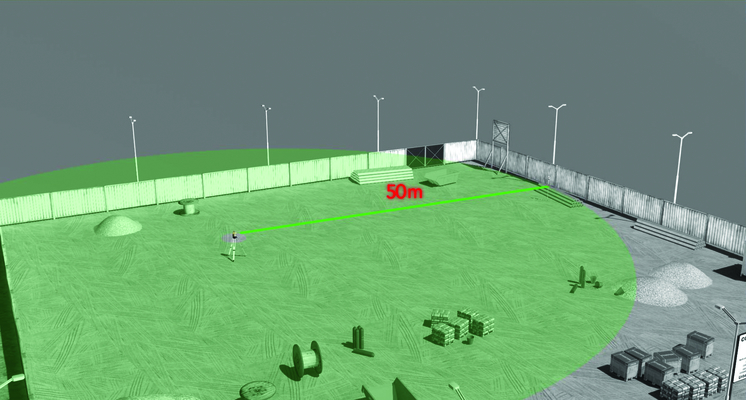 0.5m to 50m, 360° horizontal, 250° vertikal