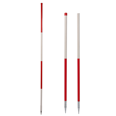 • The jointable ranging poles allow for space-saving transport. Also, the two segments, each with a steel tip, are highly useful when many points have to be marked.