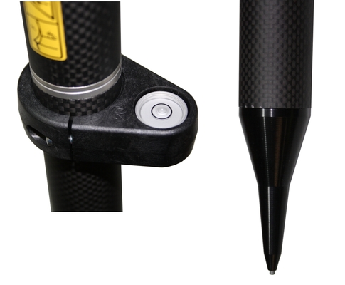 - The lower part of the pole is equipped with a circular level which makes vertical positioning easy.