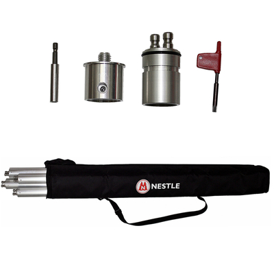 Scope of delivery: Manhole tripod with 1 extension 1m, plate 110mm, incl. rubber feet, 4 extensions à 1m in a bag, crank, adapter for cordless screwdriver, T-spanner, coupling for operation down, coupling for operation up.