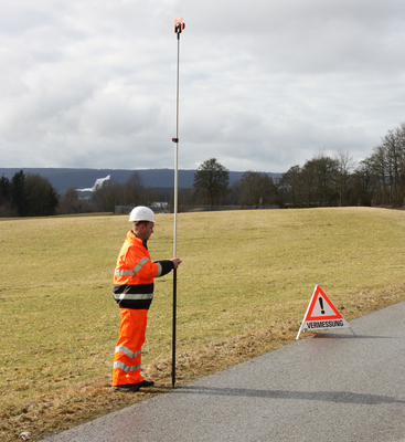 - With a height of up to 3.50m, the pole is ideally suited for measurements in hilly areas or in built-up and heavily vegetated terrain.