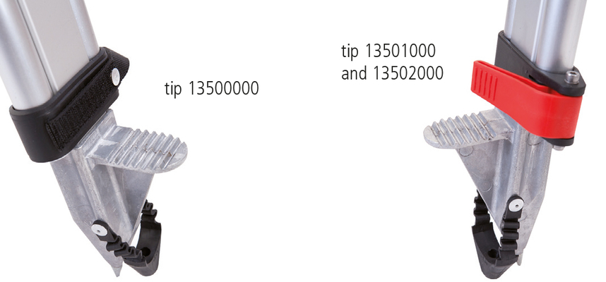 - When required, the tripod legs tips can be covered with rubber caps. This ensures safe positioning on smooth ground and prevents damages of surfaces like parquet flooring and paving tiles.