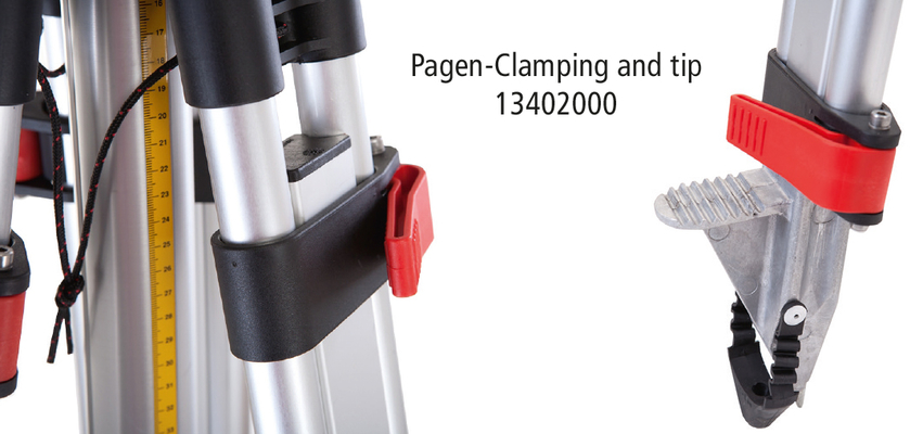 - Model 13402000 has a double side clamping for maximum clamping force. This patented system works directly in the direction of force. This provides for maximum stability especially at large heights.