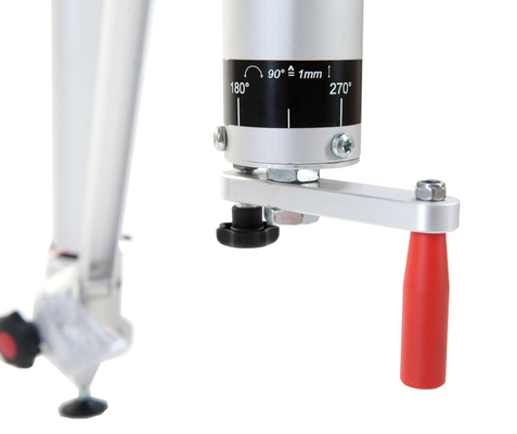 - The crank handle is located directly below the central column and can be operated any time and at any tripod extension height.
